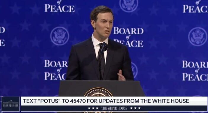 Fig. 1: Jared Kushner, “inviato speciale” per la pace nominato da Trump e membro del Consiglio direttivo del Board of Peace